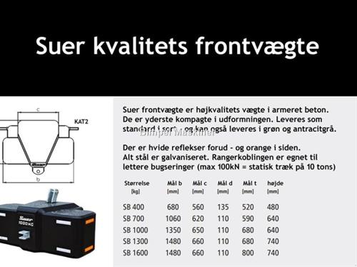 Suer 1300kg kompakt frontvægt - GRATIS LEVERING